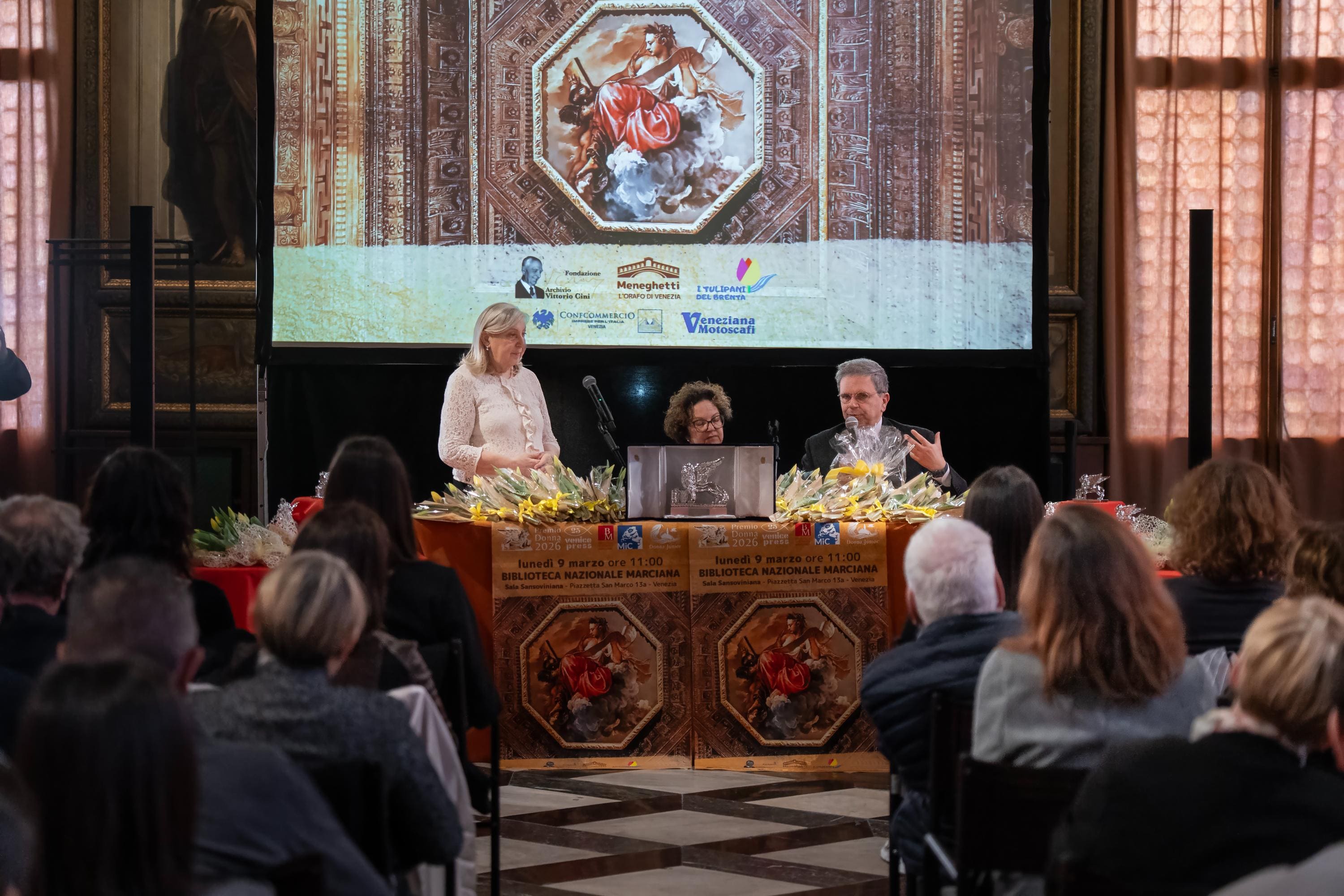 La cerimonia si è svolta nella Libreria Sansoviniana della Marciana e ha visto l’apertura del direttore della Biblioteca Nazionale Marciana Stefano Trovato. L’iniziativa si realizza grazie alla collaborazione di diverse realtà del territorio come Confcommercio Venezia, Meneghetti l’Orafo di Venezia, Fondazione Archivio Vittorio Cini, I Tulipani del Brenta e Veneziana Motoscafi.